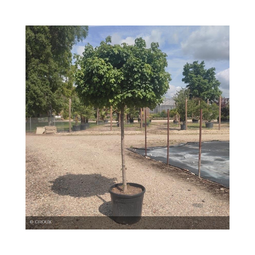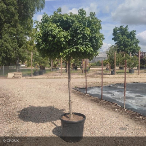 Petit arbre caduc au feuillage vert foncé, au port sphérique, à croissance modérée. Il se distingue de l’espèce type par son port très compact et arrondi, régulier et graphique. Parfait en alignement urbain ou pour les petits jardins. Rustique, résistant à la sécheresse une fois bien installé, toutes expositions et types de sols.