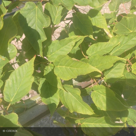 Petit arbre caduc au feuillage vert, au port érigé, à croissance lente. Spectaculaire écorce marbrée de vert et d’argent évoquant la peau d’un serpent. Belle coloration automnale du feuillage jaune-orange. Remarquable arbre d’ornement, idéal en isolé ou en massif. Rustique, privilégier une exposition soleil mi-ombre et un sol ordinaire mais frais.