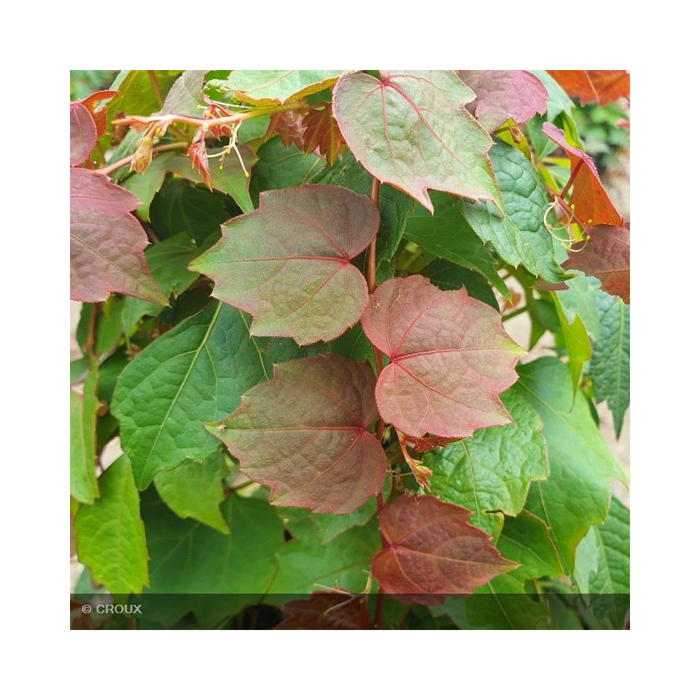 Grimpante caduque au feuillage vert lustré, à croissance très rapide. Flamboyante coloration automnale du feuillage rouge écarlate. Discrète floraison estivale suivie de baies noires appréciées des oiseaux. S’accrochant facilement aux murs à l’aide de ses vigoureuses ventouses. Toutes expositions. Très rustique, tolère tous types de sols.