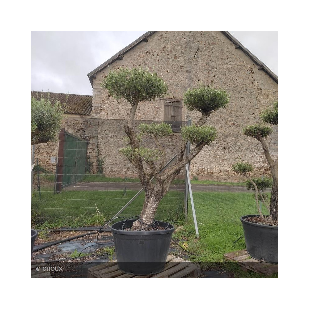 Grand classique des jardins méditerranéens, ce bel arbre d’ornement persistant au feuillage vert olive sera parfait en isolé ou en massif. Privilégier une exposition ensoleillée. Il tolère tous types de sols bien drainés et résiste bien à la sécheresse. La plante proposée possède une tête travaillée en plateau d’esprit bonsaï.
