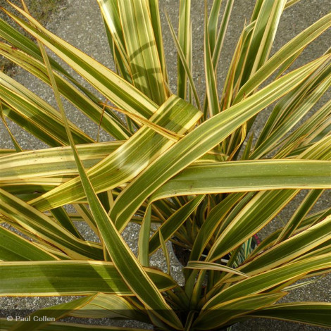 Vivace persistante formant une touffe dressée, à croissance modérée. Lumineux feuillage rubané jaune marginé de vert, finement bordé de brun-rouge, à l’allure exotique et très graphique. Idéale en massif, rocaille ou pot. Privilégier une exposition ensoleillée et un sol bien drainé. Sensible au froid, à protéger en hiver.