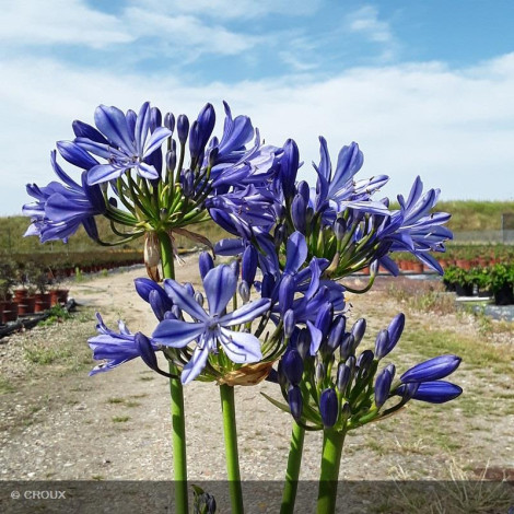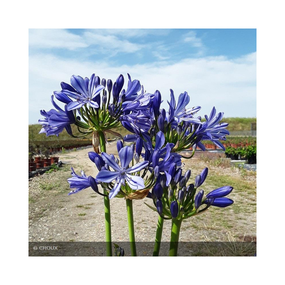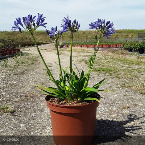 Vivace rhizomateuse persistante, au feuillage vert rubané, à croissance modérée. Abondante floraison estivale en ombelles sphériques bleu intense. Très graphique, cette variété à petit développement sera parfaite en pot ou en bordure de massif fleuri. Sensible aux grands froids, privilégier une exposition ensoleillée et un sol bien drainé.
